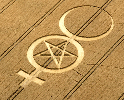 This pictures shows marks in cornfields generated by aliens using interdimensional technology.