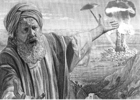 121. His punishment for the disobedience of the population of Sodom and Gomorrah against his commands was that he let two small atom bombs ignite over the two cities, which finally leveled everything to the ground, killing all humans and animals.