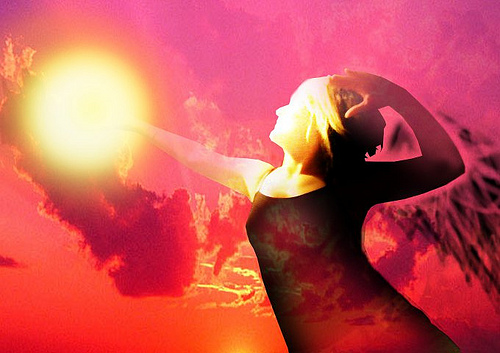 Idet jeg fulgte hennes kall, trengte jeg gjennom muren og sto ved hennes side. Det så ut som om skaren forsøkte å følge etter men ble kastet tilbake av den flammende ring. En av de modigste styrtet seg mot meg, før jeg passerte ringen, og prøvde å ta fatt i meg, men hans arm ble antent av lysflammen og skrumpede sammen, som om den var kastet i en smelteovn.