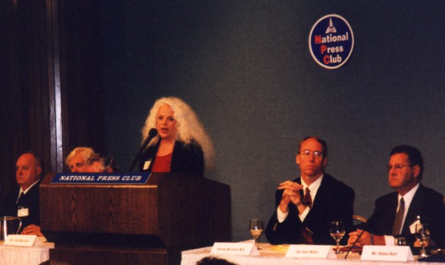 CR: Dr. Carol Rosin (picture;speaking) SG: Dr. Steven Greer (to the right for CR)