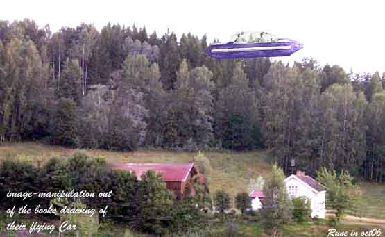 4 men of Korendor-origin but apparent as normal amr.men came in a white ’53 Plymouth Fury and picked him up and drove some time to where they had parked a kind of flying car of their own origin from Korendor. They said it also had outfit to eliminate gravitywaves and could go up to some few kilometres high and had also pressure-cabin and autopilot. He got a demo-trip in the craft and a lot of technical data on it and descriptions on how it worked in many details, which can be found in the e-book.