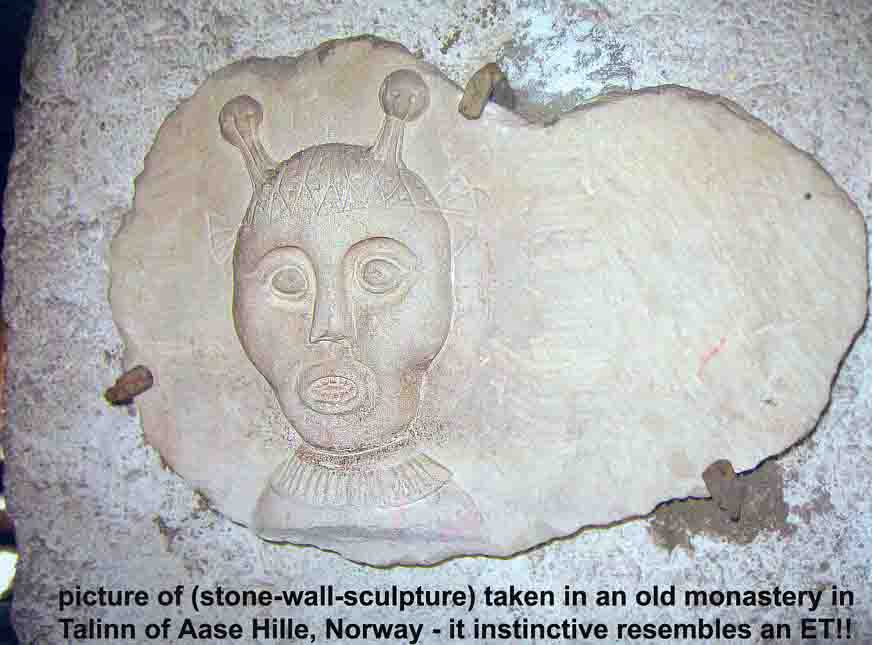 in many of the Rampa books - ex THE HERMIT - it is mentioned ETs with horns-like things on the head, but just this picture may also be on a helmet -like cap on this "ET". the picture show a girl - just as everybody of us - is having bodies in many dimensions -> begin down on nr.1 picture 3 here is the girl on the mental plane (for example a frequenzy of zz terra-Hz) the white line between the bodies in the diff. planes - is the etheric line - "the silvercord" which connects the physical body to the higher dim.body while "in carno" and up the overself. On this plane - 3-left- she can take other outer forms - controlled directly by the mindforce of the overself where the cord goes to the left...
