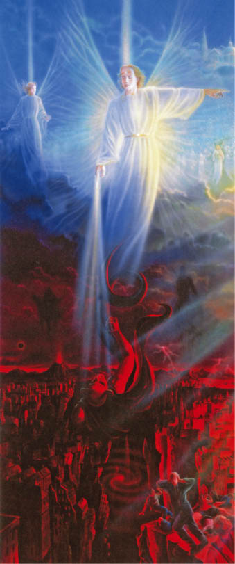 Jeg vidste det ikke. Det eneste, jeg med sikkerhed indså, var at ingen af disse stridende væsener på kamppladsen var forladt. Der blev passet på dem; de blev iagttaget og endda hjulpet. Og det var lige så klart en kendsgerning, at ingen af dem vidste det. Hvis Jesus eller Hans engle talte til dem, kunne de bestemt ikke høre det. Der var ingen pause i den strøm af had, der kom fra deres hjerter; deres øjne søgte kun efter nogen i nærheden for at ydmyge dem. Det ville have forekommet mig umuligt ikke at være klar over, hvad der var det største og mest slående ved hele dette landskab, hvis ikke jeg selv først havde stirret på englene uden at se dem.