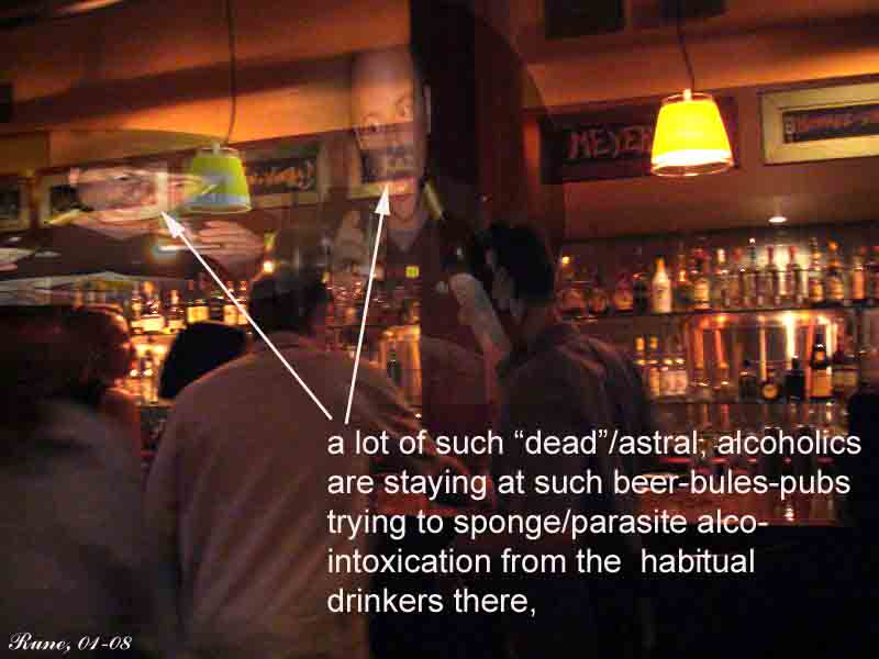 Var dette lysdække da en form for værn? ... Var det en slags beskyttelse mod ... mod kropsløse væsener som mig selv? Formodentlig havde disse substansløse ("døde") væsener engang haft rigtige faste legemer, sådan som jeg selv havde haft det. Hvad nu hvis de, medens de var i deres kroppe, havde udviklet en afhængighed af alkohol, der gik ud over det rent fysiske, ja blev psykisk, endda åndeligt? Når de så mistede deres legeme, var de for al evighed afskåret fra det, som de higede og tørstede efter, med undtagelse af den korte tid, hvor de kunne tage en andens legeme i besiddelse.