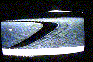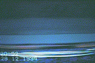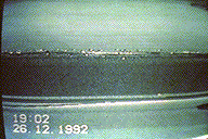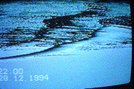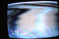 have its reason in that the receiver is a prototype. The pictures are filmed with a videocamera targeted against the monitor attached to the receiver. This because the deflection frequencies of the monitor connected to the receiver are not 100% compatible with normal videostandard. The horisontal and vertical frequencies belonging to our videostandard is transmittet through the hyperspace to those at the other end to tell them about the format we like to receive the signals. The videosignals who comes back are not always totaly within this format so a adjustment of the deflection frequencies of the monitor is nessesary. This is the reason why the pictures have a timestamp on them. Then it's used a normal photo camera to photograph the TV screen showing the video with the pictures. This photographs are then